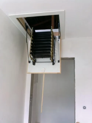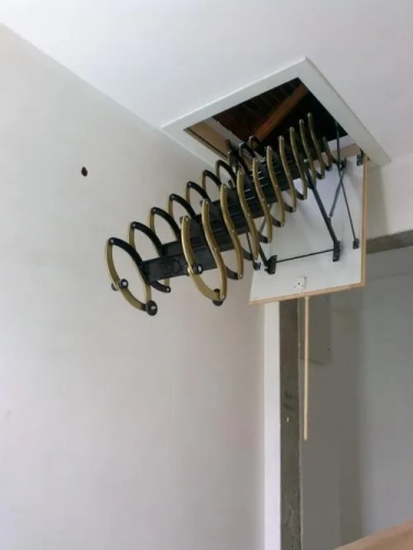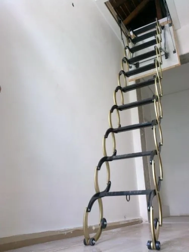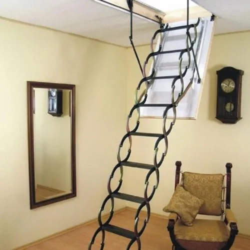 Katlanabilir tasarım: Çatı katı merdivenleri genellikle katlanabilir veya teleskopik bir yapıya sahiptir. Bu sayede, kullanılmadıkları zamanlarda yerden tasarruf edebilir ve saklanabilirler.