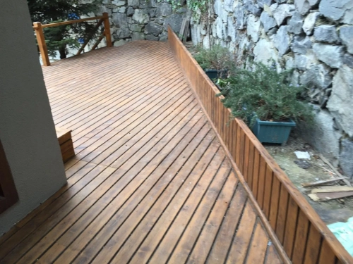 Estetik görünüm: Deck döşeme, doğal ahşap görünümü ile dış mekanlara estetik bir katkı sağlar. Farklı ahşap türleri ve renk seçenekleri ile çeşitli tasarım imkanları sunar.