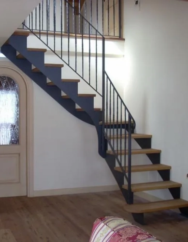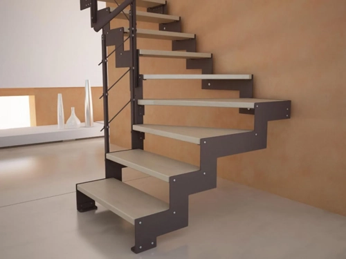 Taşıyıcı elemanlar: Demir taşıyıcılı merdivenlerde, merdivenin basamaklarına ve genellikle merdivenin altında veya yanlarında yer alan destek elemanları demir malzemeden yapılır. Demir, sağlamlığı ve dayanıklılığı nedeniyle tercih edilen bir yapı malzemesidir.