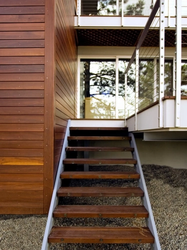 Tasarım Seçenekleri: Dış mekan ahşap merdivenlerde farklı tasarım seçenekleri kullanılabilir. Ahşabın doğal rengi veya boyanarak farklı renklerde tasarlanabilir.