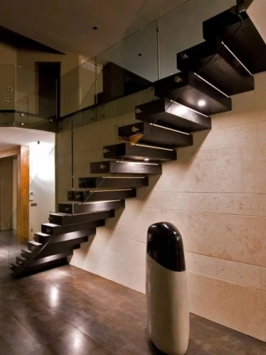 LED Aydınlatma: Kutu merdivenlerde genellikle LED aydınlatma kullanılır. Adımların altına yerleştirilen LED ışıklar, hem estetik bir vurgu hem de pratik bir aydınlatma sağlayabilir.