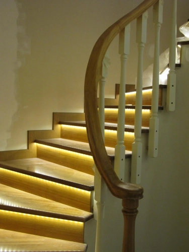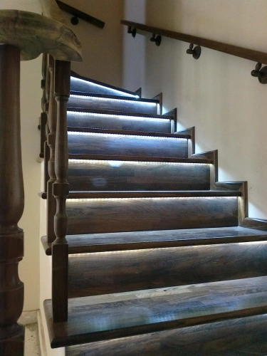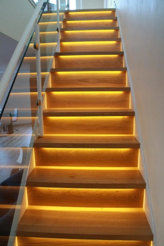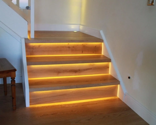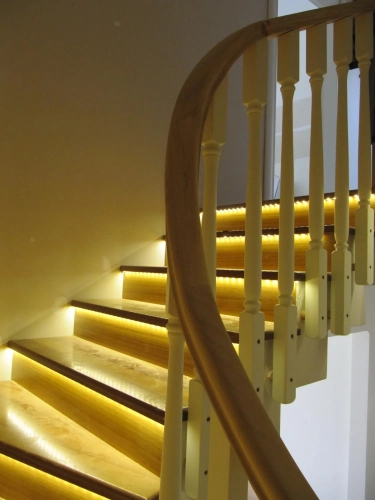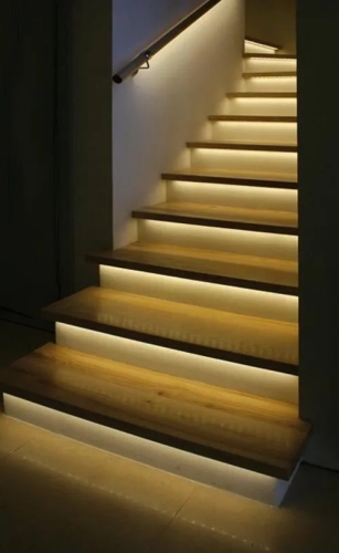 LED aydınlatmalı merdivenler, merdivenlerin basamaklarında veya yan korkuluklarında LED ışıklar kullanılarak aydınlatılmasıyla oluşturulan modern ve dekoratif bir aydınlatma çözümüdür. Bu tür aydınlatma, merdivenlerin estetik görünümünü vurgularken aynı zamanda gece veya düşük ışık koşullarında güvenli bir kullanım sağlamak amacıyla tercih edilir.
