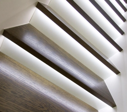 Renk Seçenekleri: LED'ler farklı renk seçenekleri sunar. Bu nedenle, LED aydınlatmalı merdivenlerde farklı renkler veya renk değiştirme özellikleriyle dekoratif ve görsel efektler elde etmek mümkündür.