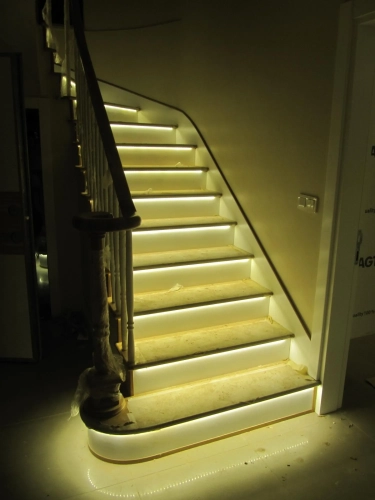 Gece Güvenliği: LED ışıklar, gece saatlerinde veya düşük ışık koşullarında merdivenleri aydınlatarak düşme ve kazalara karşı koruyucu bir rol üstlenir.