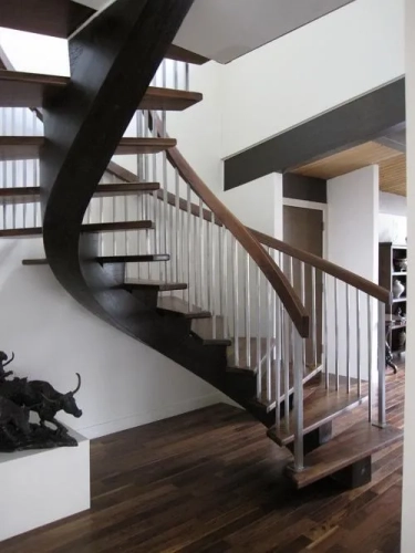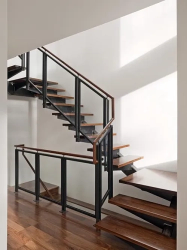 Farklı malzeme seçenekleri: Omurga taşıyıcılı merdivenlerde omurga veya kolon genellikle metalden yapılırken, basamaklar için ahşap, cam veya diğer malzemeler kullanılabilir. Bu, tasarım seçeneklerini artırır ve merdiveni mekâna uygun hale getirir.