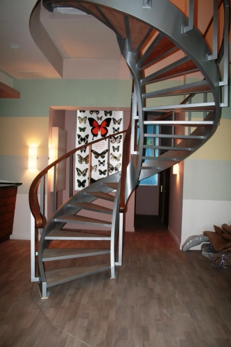 Estetik Korkuluklar: Helezon merdivenler genellikle estetik korkuluklarla birleştirilir. Cam, ahşap veya metal korkuluklar, tasarımın şıklığını artırabilir.