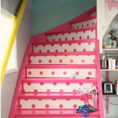 Tasarım seçenekleri: Renkli ahşap merdivenlerde, farklı renk ve desen seçenekleri ile çeşitli tasarım alternatifleri sunulur. Her mekânın dekorasyonuna uygun renklerde seçim yapmak mümkündür.